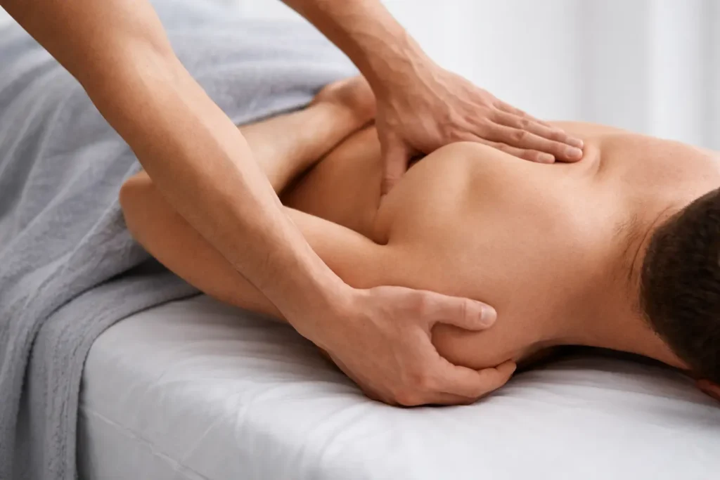 Masazh terapeutik për lehtësimin e dhimbjeve muskulare, tensionit në qafë dhe shpinë, dhe rikuperim të trupit pas përpjekjeve fizike.